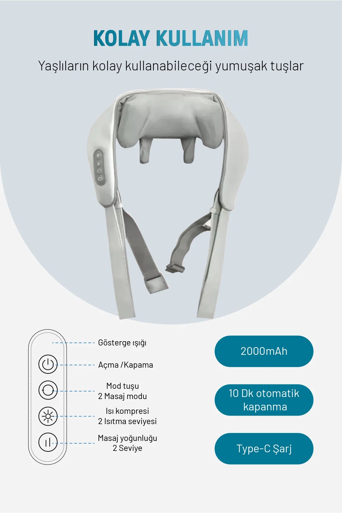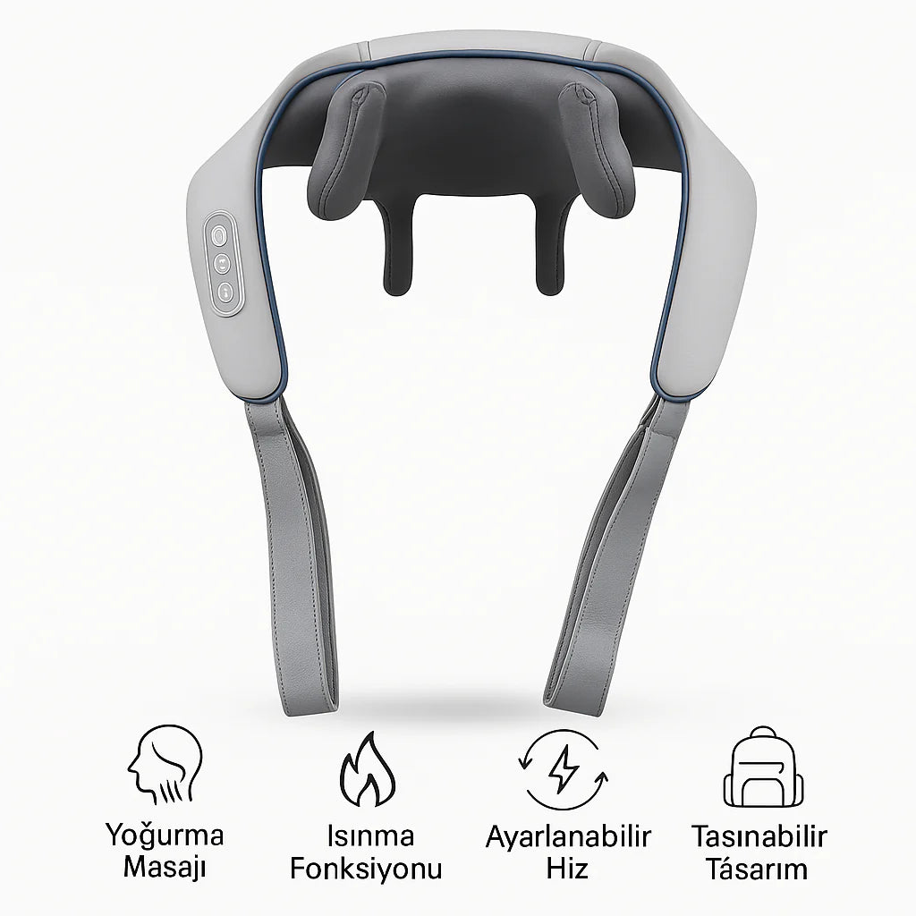 Omuz ve boyun konturlarına uyum sağlayarak geniş bir masaj alanı sunar